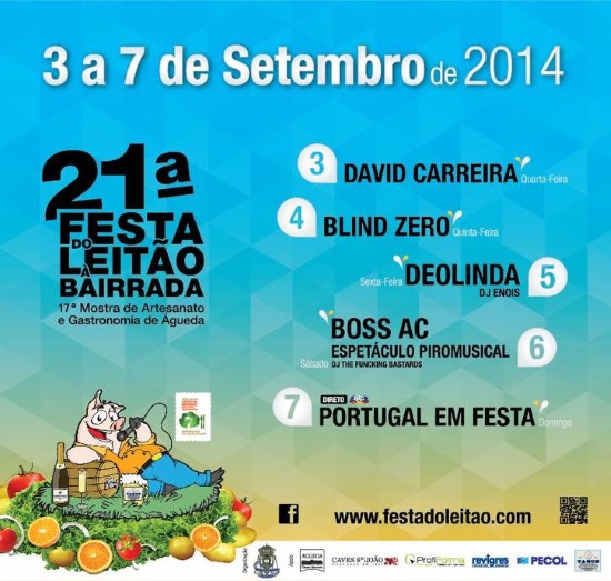 A Associação Comercial de Águeda, com o apoio da Câmara Municipal, realiza, entre os dias 3 e 7 Setembro, a 21ª edição da Festa do Leitão à Bairrada.