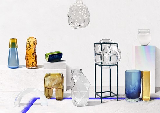 Conjunto de peças em vidro da Marinha Grande dos designers portugueses para a exposição Glass Cares