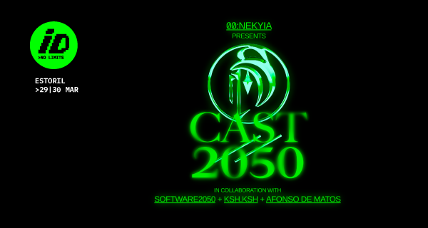 O ID_NO LIMITS amplia o horizonte artístico e apresenta uma instalação inédita do colectivo português 00:NEKYIA. A peça intitula-se CAST//2050 em colaboração com Software2050 + KSH.KSH + Afonso De Matos.