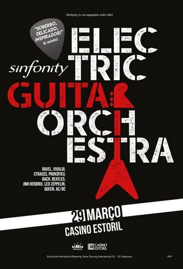 O Casino Estoril recebe, no dia 29 de Março, a partir das 22 horas, a “Sinfonity: Electric Guitar Orchestra”. Trata-se de um espectáculo de tributo a compositores intemporais, interpretado por uma Orquestra de 12 guitarras.