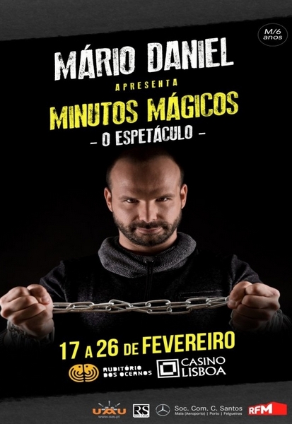 Mário Daniel apresenta o espectáculo “Minutos Mágicos”, de 17 a 26 de Fevereiro, no Auditório dos Oceanos do Casino Lisboa. Sextas-Feiras e Sábados, às 21h00 e aos Domingos às 17h00. M/6. Preço: 18€ a 20€