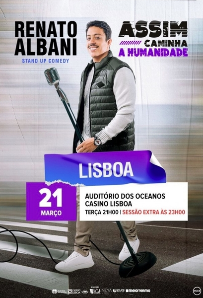 O humorista brasileiro Renato Albani protagoniza, no dia 21 de Março, a stand-up comedy “Assim Caminha a Humanidade” no Auditório dos Oceanos do Casino Lisboa. Após esgotar o espectáculo das 21 horas foi agendada uma sessão extra para as 23 horas.