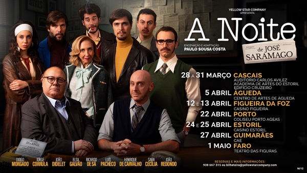 No ano em que se comemoram os 50 anos do 25 de abril, a Yellow Star Company de Carla Matadinho e Paulo Sousa Costa, apresenta a peça A NOITE, de José Saramago, com Diogo Morgado, Jorge Corrula, João Didelet, Elsa Galvão, Ricardo de Sá, Luís Pacheco, Henrique de Carvalho, Sara Cecília e João Redondo, com encenação de Paulo Sousa Costa.