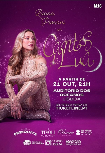 Luana Piovani estreia, no próximo dia 21 de Outubro, pelas 21 horas, Cantos da Lua no Casino Lisboa. O ciclo de espectáculos renova-se às Segundas e Terças-Feiras, no Auditório dos Oceanos. M/16. Preço: 30€.