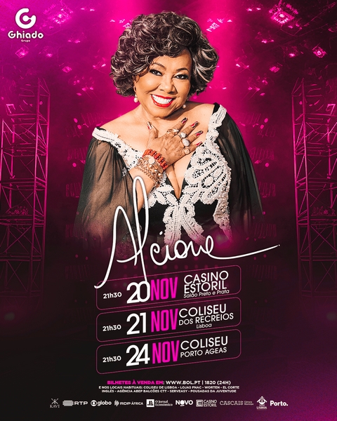 A inconfundível voz de Alcione, um dos maiores nomes da música brasileira, regressa a Portugal, em novembro, para três espetáculos imperdíveis! A tour deste ano passa pelo Casino Estoril, a 20 de novembro e por Lisboa, no dia seguinte, onde a cantora atua, no Coliseu dos Recreios. Ao Porto “Marron”, como é carinhosamente apelidada, chega a 24 de novembro para se apresentar no palco do Coliseu Porto Ageas.