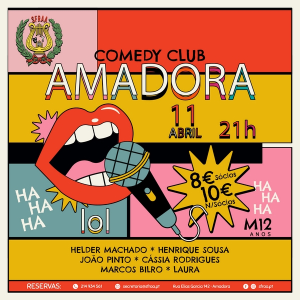 Depois do sucesso da primeira edição, estamos de volta para mais uma noite cheia de gargalhadas e boa disposição! Como prometemos, a segunda edição do Comedy Club Amadora chega no dia 11 de abril, às 21h, na SFRAA (Sociedade Filarmónica de Apoio e Recreio Artístico da Amadora).