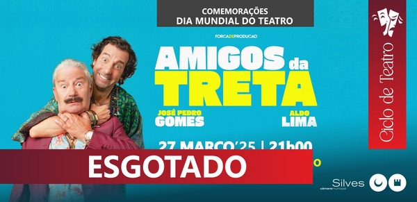 O Município de Silves informa que a peça "Amigos da Treta" pela Força de Produção, no Teatro Mascarenhas Gregório, em agenda para dia 27 de março, já tem a sessão esgotada.