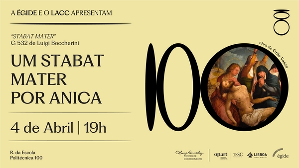 Já no dia 4 de abril, pelas 19h00, o concerto “Stabat Mater”, do italiano Luigi Boccherini encerra o ciclo “Música no 100”, com a soprano Carla Caramujo, Ana Pereira e José Pereira no violino, Joana Cipriano na viola e Nuno Abreu no violoncelo.