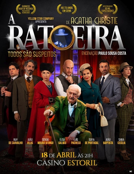 O Salão Preto e Prata do Casino Estoril acolhe, nos próximos dias 17 e 18 de abril, a partir das 21 horas, “A Ratoeira”, de Agatha Christie. Trata-se de umaprodução da Yellow Star Company comencenação de Paulo Sousa Costa. A peça conta com um elenco de luxo, reunindo, em palco, nomes como Ruy de Carvalho, Elsa Galvão, João Baptista, João Vilas, Luís Pacheco, Sara Cecília, Sérgio Moura Afonso e Sofia de Portugal.