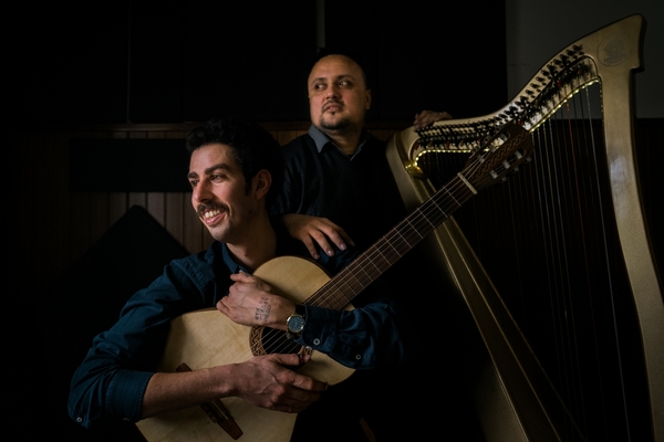 o Passeio Gastronómico na manhã de domingo ilustrado pela música do guitarrista e produtor português Amigo Ivo e o harpista colombiano Juan Cólon.