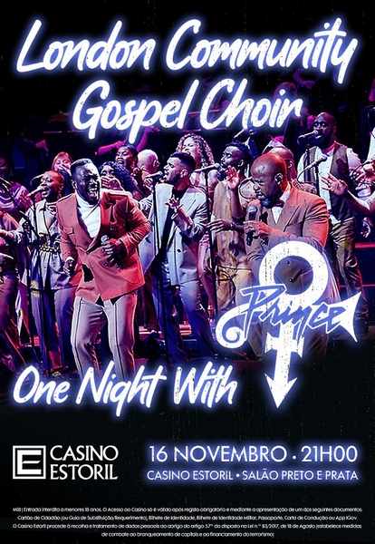 Os London Community Gospel Choir apresentam, no dia 16 de novembro, a partir das 21 horas, o espectáculo “One Night With Prince” no Salão Preto e Prata do Casino Estoril. O prestigiado coro britânico convida o público a viajar pelos principais êxitos do músico norte-americano Prince.