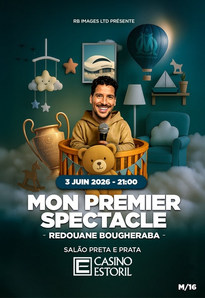 O Salão Preto e Prata do Casino Estoril recebe, no dia 3 de junho, pelas 21 horas, “Mon Premier Spectacle” de Redouane Bougheraba. M/16. Preços: De 49€ a 69€.