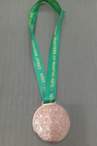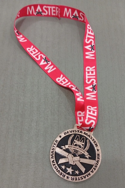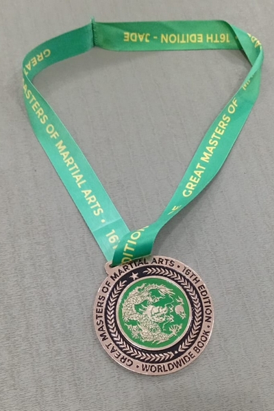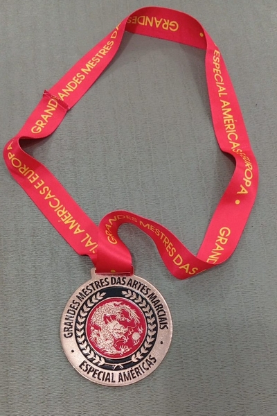 (Receber a medalha e o certificado na cerimónia pelo Mestre Fábio Bueno)
