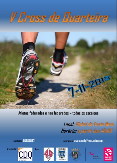 No próximo dia 7 de Novembro de 2015, (Sábado), pelas 14:00, no Pinhal do Forte Novo, vai ter lugar o «V CROSS DE QUARTEIRA».