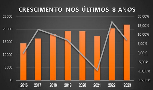 Assim, o crescimento registado foi de 7,21% em relação ao ano anterior (2022), que, entretanto, havia registado uma subida de 17,29% em relação a 2021, ano marcado pela pandemia (tal como o anterior), que foram responsáveis pela inversão do crescimento do número de filiados dos últimos oito anos. Ainda assim, desde 2016 (ano dos Jogos Olímpicos do Rio de Janeiro), o número de filiados cresceu 50,43% (de 14542 filiados para 21875)
