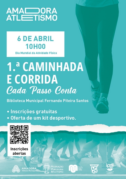 No âmbito do Dia Mundial da Atividade Física, irá realizar-se, no próximo dia 6 de abril (domingo), a partir das 10h00, a 1ª Caminhada e Corrida 'Cada Passo Conta', com partida e chegada junto à Biblioteca Municipal Fernando Piteira Santos, passando por zonas emblemáticas da cidade.