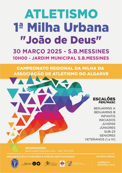 São Bartolomeu de Messines prepara-se para receber a 1.ª Milha Urbana "João de Deus", no domingo, dia 30 de março, pelas 10h00, com partida no Jardim Municipal de São Bartolomeu de Messines.