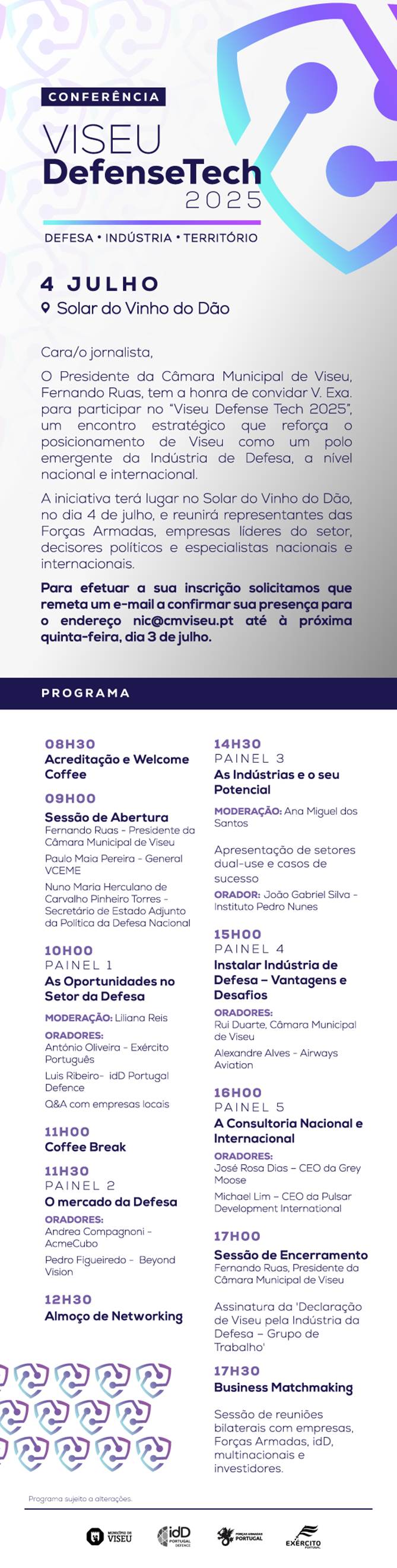 Viseu Defense Tech 2025 – Solar do Vinho do Dão, 4 de julhoPublicado em terça-feira, 1 de julho de 2025 | Imprimir fShare Tweet Anterior Seguinte
