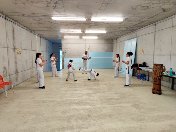 No último sábado, dia 10 de maio, decorreu uma sessão de capoeira que envolveu participantes de todas as idades, desde crianças até adultos, num ambiente descontraído,