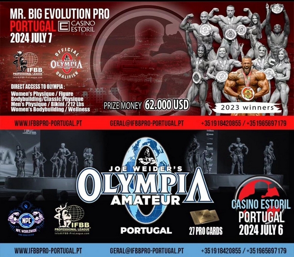 O Salão Preto e Prata do Casino Estoril recebe no próximo fim de semana, dias 6 e 7 de Julho, um dos melhores eventos mundiais de Culturismo e de Fitness, organizado pelo Ginásio Mr Big Evolution, promotor da IFPP Pro Portugal.Estarão em destaque as competições Olympia Amateur e Mr Big Evolution Pro.