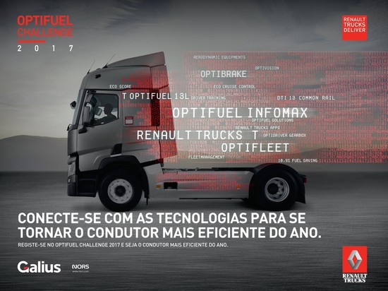 A quarta edição do Optifuel Challenge, uma competição de condução ecológica organizada pela Renault Trucks, está prestes a começar. No total, mais de 2500 condutores de todo o mundo vão competir, nos respetivos países, ao volante do Renault Trucks T Optifuel de 13 litros. O melhor condutor de cada país, o que consumir menos sem sacrificar a velocidade comercial, irá participal na grande final internacional no outono de 2017. Em Portugal a Galius, empresa do Grupo Nors, será responsável pela organização da competição.