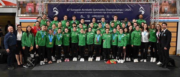 Este domingo a Seleção Nacional de Ginástica Acrobática conquistou um feito histórico ao terminar o Campeonato da Europa em 1° lugar. O medalheiro luso ficou completo com um total de oito medalhas.