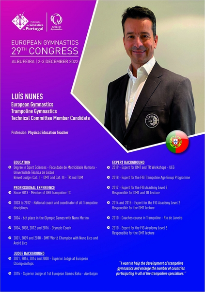 Luís Nunes – candidato a membro do Comité Técnico de Ginástica de Trampolins