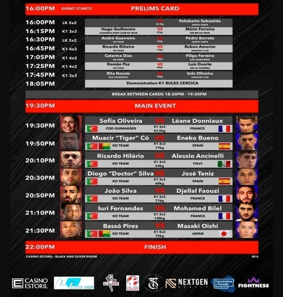 O Casino Estoril acolhe, assim, um notável cartaz que se distingue pelos conceituados atletas que subirão ao ringue para disputar um total de 13 combates. Com um extenso programa, os combates preliminares iniciam-se pelas 16h00 e, posteriormente, o Main Event está agendado para as 19h30 no Salão Preto e Prata.