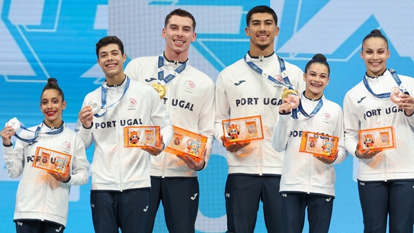 Já Beatriz Carneiro e Inês Faria ganharam a medalha de bronze na final da competição de pares femininos de Ginástica acrobática, com 27.770. A Bélgica ficou com o ouro (28.620) e a Ucrânia com a prata (28.270).