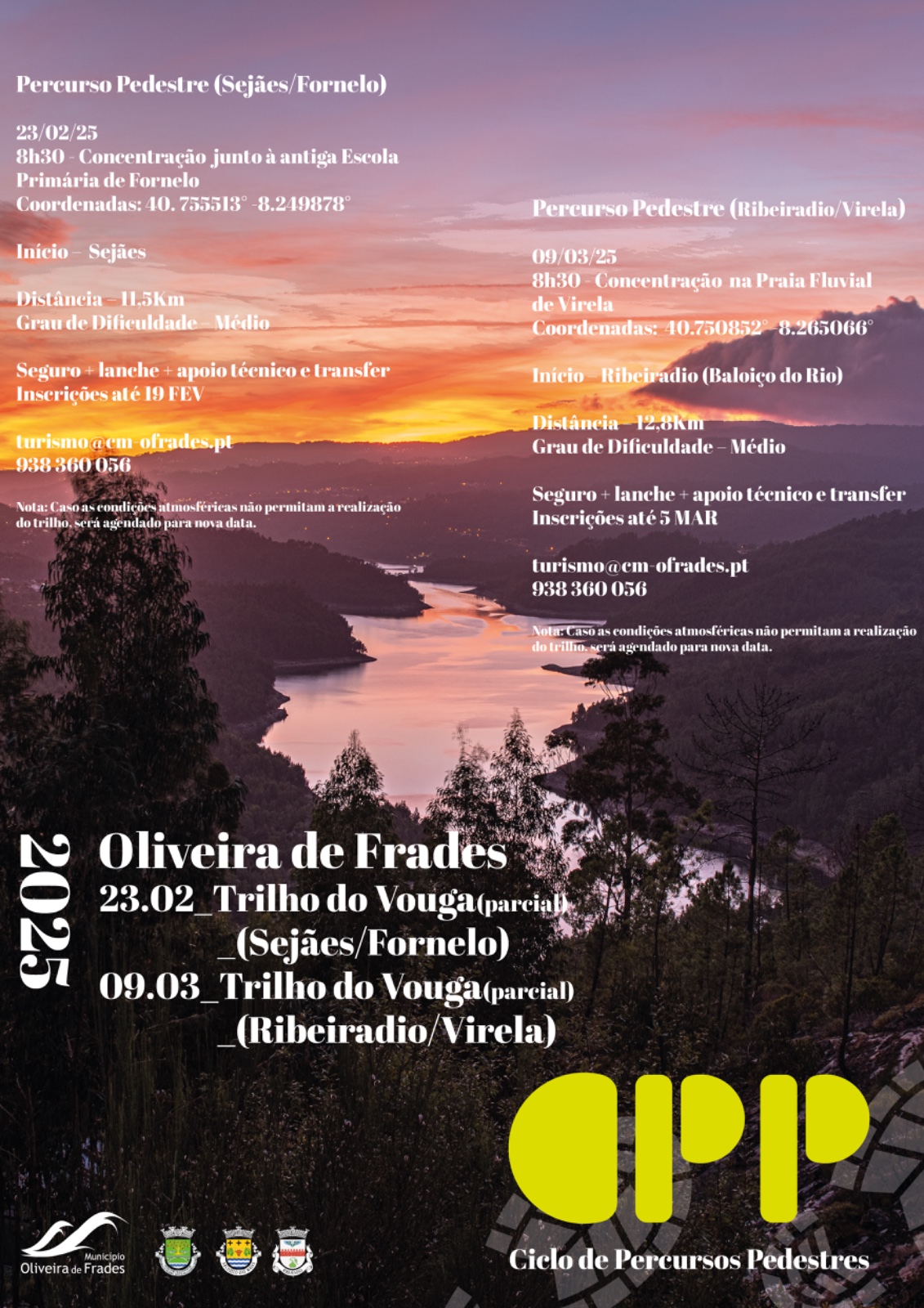 O Município vai iniciar, brevemente, um novo ciclo de Percursos Pedestres com o Trilho do Vouga (Sejães/Fornelo) no dia 23 de fevereiro.
