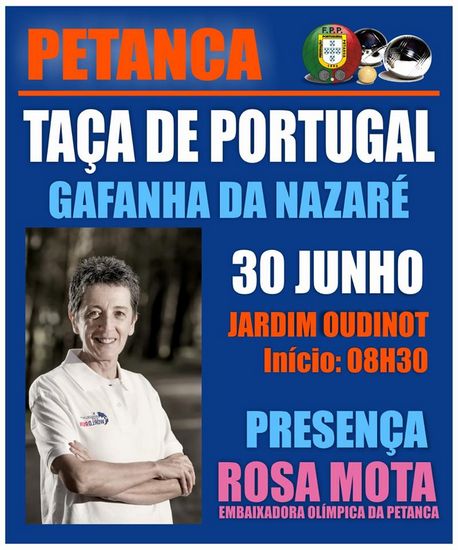 No próximo domingo, 30 de junho, a partir das 08h30, na Gafanha da Nazaré, Ílhavo, vai realizar-se a Taça de Portugal, a maior prova nacional da modalidade, na qual deverão estar presentes cerca de 400 atletas masculinos e femininos em representação de todas as equipas inscritas na Federação Portuguesa de Petanca.