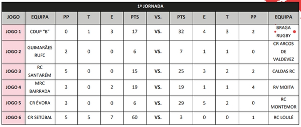 Resultados dos campeonatos Nacionais de RugbyPublicado em domingo, 16 de outubro de 2022 | Imprimir TOP 10: Taça de Portugal Santander: CN1: Challenge Cup Inverno: Torneio Nacional U18: Torneio Nacional U16: fShare Tweet Anterior Seguinte