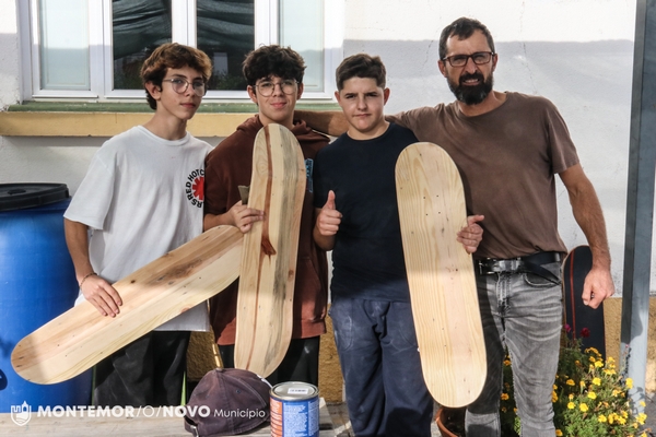 Terminou recentemente no Centro Juvenil de Montemor-o-Novo, um Workshop de Construção de Skates, com Hugo Almeida! A ideia foi dar a oportunidade e formação a jovens para que pudessem construir de raiz uma prancha de skate, a partir do aproveitamento de paletes! A tarefa requereu empenho, algum conhecimento, mas também muita paciência! Mas o esforço valeu a pena, pois estes jovens vão agora poder rolar com uma prancha construída por si próprios!