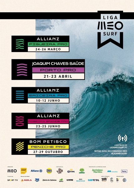 A Liga MEO Surf 2023 é uma organização da Associação Nacional de Surfistas e da Fire!, com o patrocínio do MEO, Joaquim Chaves Saúde, Allianz Seguros, Bom Petisco, Go Chill, Corona, Somersby, o parceiro de sustentabilidade Jerónimo Martins, o apoio local das Câmaras Municipais do Porto e de Matosinhos, e o apoio técnico da Onda Pura Surf Center e da Federação Portuguesa de Surf.
