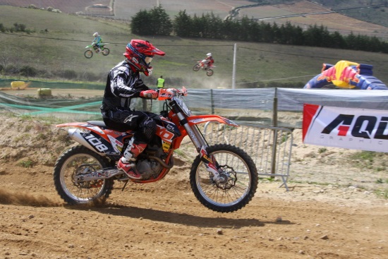 Surpreendente foi o regresso de última hora de Joaquim Rodrigues Jr. ao “Nacional” de Motocross, depois de uma temporada no Brasil que culminou com o regresso a Portugal e à aposta na modalidade de Enduro. O piloto de Barcelos venceu a primeira manga da categoria MX2, aos comandos de uma KTM 250 SX-F, mas na última corrida do dia foi forçado ao abandono com um furo na roda traseira.