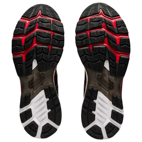A parte inferior também sofreu algumas alterações mantendo, no entanto, os principais pontos de destaque neste modelo que são a estabilidade e o conforto. A edição 27 parece ser um pouco mais flexível e com um amortecimento superior às versões anteriores, através da melhorada tecnologia Flytefoam Propel. O calcanhar mantêm toda a estabilidade através de um melhorado MetaClutch e pelo Dynamic DuoMax Support System. Sim, são nomes precisos e consistentes com a excelente tecnologia que a Asics colocada nos seus modelos.