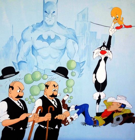 Em contraste, a sua série de “B.D” transmite uma técnica mais afinada e precisa na representação das caricaturas que estamos tão familiarizados. A sua interpretação das caricaturas num contexto contemporânea captam a nossa atenção para o espaço e o equilíbrio em torno de cada figura.
