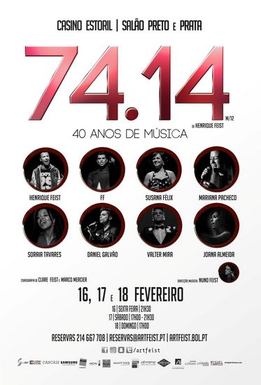 Com uma programação de excelência, oSalão Preto e Prata do Casino Estoril recebe, a 16, 17 e 18 de Fevereiro, o espectáculo “74.14”, da autoria de Henrique Feist e com direcção musical de Nuno Feist. Numa curta série de representações, o público poderá recordar numerosos sucessos que marcaram as últimas quatro décadas da música nacional e internacional.