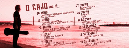 Esta digressão nacional d'O Gajo vai incluir também datas em alguns dos principais Festivais de música deste verão, desde o Boom Festival (27 julho) em Idanha-a-Nova ao Festival Bons Sons (11 agosto) em Tomar.