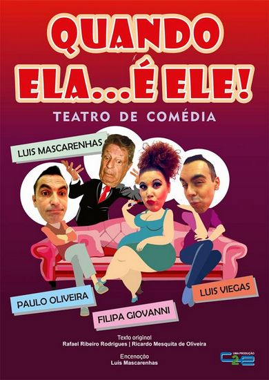 A boa disposição vai estar à solta no Cineteatro D. João V no próximo dia 15 de março, a partir das 21h30, com a hilariante comédia "Quando Ela é Ele!". Com Luis de Mascarenhas, Paulo Oliveira, Luis Viegas e Filipa Giovanni.
