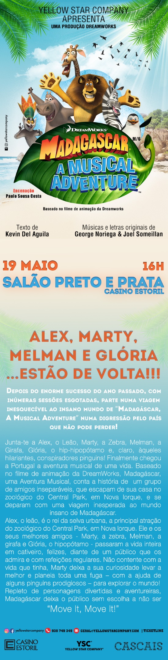 Madagascar - Só dia 19 de Maio no Salão Preto e Prata do Casino EstorilPublicado em terça-feira, 30 de abril de 2019 | Imprimir fShare Tweet Anterior Seguinte