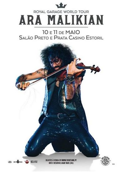Com um assinalável prestígio internacional, Ara Malikian actua, nos próximos dias 10 e 11 de Maio, pelas 22 horas, no Casino Estoril. Numa dupla sessão de espectáculos, Ara Malikian sobe ao palco do Salão Preto e Prata para exprimir todo o seu virtuosismo em “Royal Garage World Tour”.