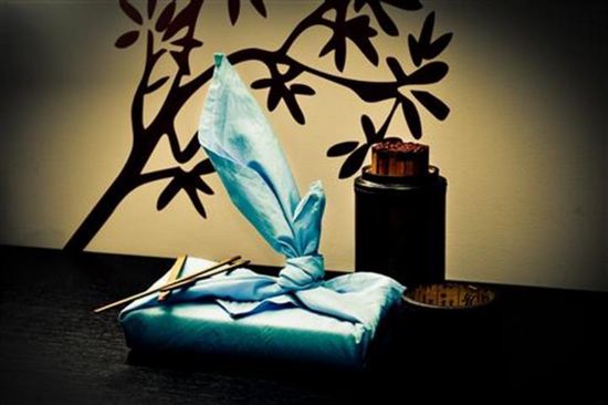 «Furoshiki é uma arte de embalagem em tecido. Um quadrado de tecido de algodão ou de seda é utilizado inúmeras vezes para embrulhar e/ou transportar roupas e presentes. Pode ser liso ou pintado, pequeno ou maior, adaptando-se às necessidades de quem utiliza esta técnica. Texto: Hands on Hearts