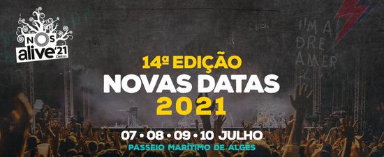 O sonho da 14ª Edição do NOS Alive continua nos dias 07, 08, 09 e 10 de julho de 2021, no Passeio Marítimo de Algés. Mantemo-nos otimistas e mais fortes do que nunca a trabalhar para que esta seja a melhor de sempre. E é fazendo jus à nossa assinatura que queremos manter o melhor cartaz. Sempre!