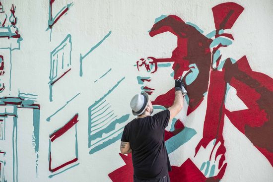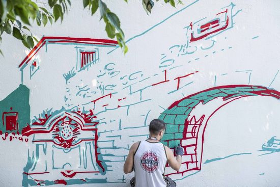 Com ilustrações da autoria de Tomás Reis, está a ser pintado pelo artistas urbanos sediados em Benfica, Edis One e Pariz One.