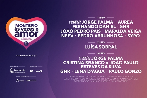 De 11 a 14 de fevereiro, será possível assistir a espetáculos de Aurea, Cristina Branco & João Paulo Esteves da Silva, Fernando Daniel, GNR, João Pedro Pais, Lena D’Água, Luísa Sobral, Mafalda Veiga, NEEV, Paulo Gonzo, Pedro Abrunhosa e Syro além do espetáculo inédito “As Canções de Amor de Jorge Palma”.