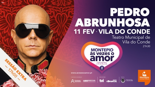 A um mês do arranque do Festival “Montepio às vezes o amor”, é anunciado um novo concerto de Pedro Abrunhosa. A primeira sessão marcada para o Teatro Municipal de Vila do Conde às 21H00 esgotou em tempo recorde e, por consequência, surge uma nova sessão às 17H00 para acolher todos aqueles que queiram celebrar o fim de semana dos namorados ao som das músicas que marcaram a sua vida.