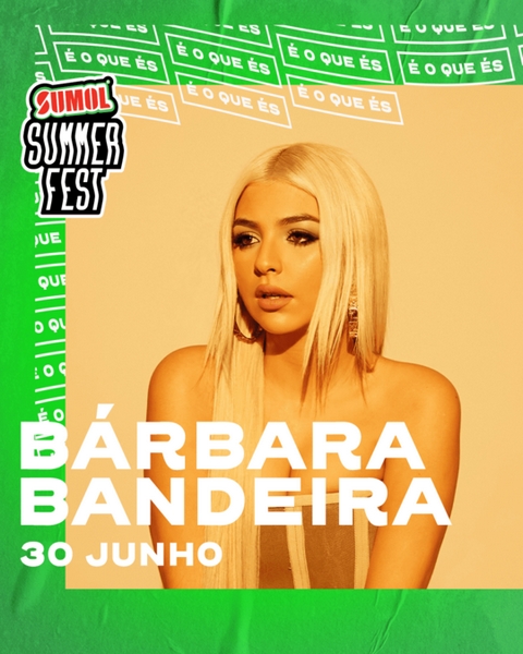 Nascida no virar do séc. XXI, Bárbara Bandeira já conta com um currículo invejável. Atualmente campeã de airplay com o tema "Como Tu", numa parceria com Ivandro, desde criança que a música foi sempre o único caminho que quis trilhar. Estreou-se profissionalmente em Novembro de 2015 com o lançamento do primeiro single: "Crazy". E bastaram dois anos para ser distinguida com o Globo de Ouro para Revelação do Ano. Em 2018 esteve entre os cinco artistas nomeados para o prémio Best Portuguese Act, dos MTV Europe Music Awards, um prémio que viria a ganhar em 2022. Também em 2022 venceu o prémio Vodafone Canção do Ano nos Prémios Play com "Onde Vais" - esse tema conta a participação de com Carminho e já tem mais de 13 milhões de visualizações no Youtube. Em 2019 foi concorrente do formato Dança com as Estrelas, da TVI, estreando-se ainda no mundo da apresentação digital no programa LaBanda, na RTP. Já viu a sua música numa novela da SIC e apesar de o seu percurso ter estado sempre intimamente ligado à TV - foi uma das concorrentes do programa Uma Canção para Ti da TVI, em 2011, e participou no The Voice Kids, da RTP, em 2014 -, atualmente são os palcos que mais chamam por si... Depois de ter enchido algumas das principais salas do país, prepara-se agora para deixar a sua marca num dos principais festivais do verão português. Bárbara Bandeira atua, dia 30 de junho, na edição deste ano do Sumol Summer Fest num concerto imperdível.