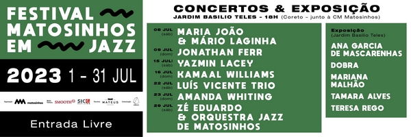 No próximo sábado, 8 de Julho, Maria João & Mário Laginha estreiam a edição de 2023 do Matosinhos em Jazz. No dia seguinte, domingo 9 de Julho, o jazz vindo do Brasil toma conta do Coreto do Jardim Basílio Teles com Jonathan Ferr, que apresenta o seu o seu mais recente álbum “Liberdade” (Janeiro 2023).