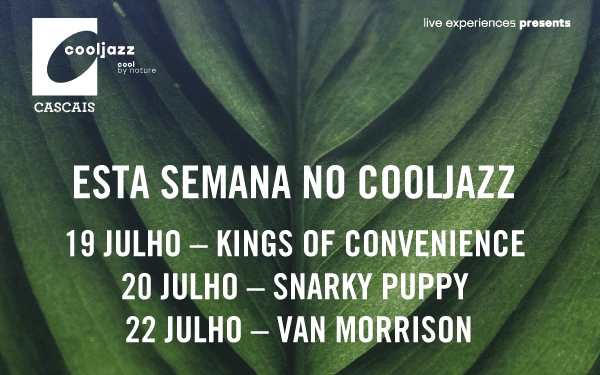 Quarta-feira, dia 19 de Julho, os Kings of Convenience e Golden Slumbers sobem ao palco do COOLJAZZ. No dia seguinte, 20 de Julho, Snarky Puppy e Filho da Mãe, e no sábado, 22 de Julho, o icónico Van Morrison apresenta o seu novo álbum. Todos os dias, as Cascais Jazz Sessions By Smooth Fm garantem o arranque dos concertos, no Parque Marechal Carmona.